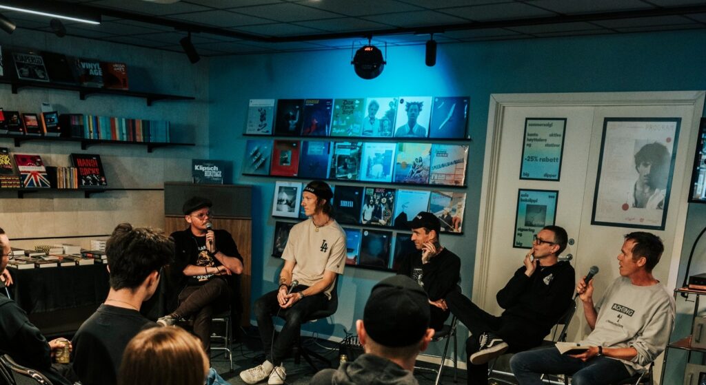 Fra lanseringa på Big Dipper i Oslo, 6. juni 2024. F.v.: Jonas A. Larsen, Åsmund Lande, Knut-Oscar Nymo, Peter Larsson og redaktør Marius Lien. Foto: Jonas Kriise.